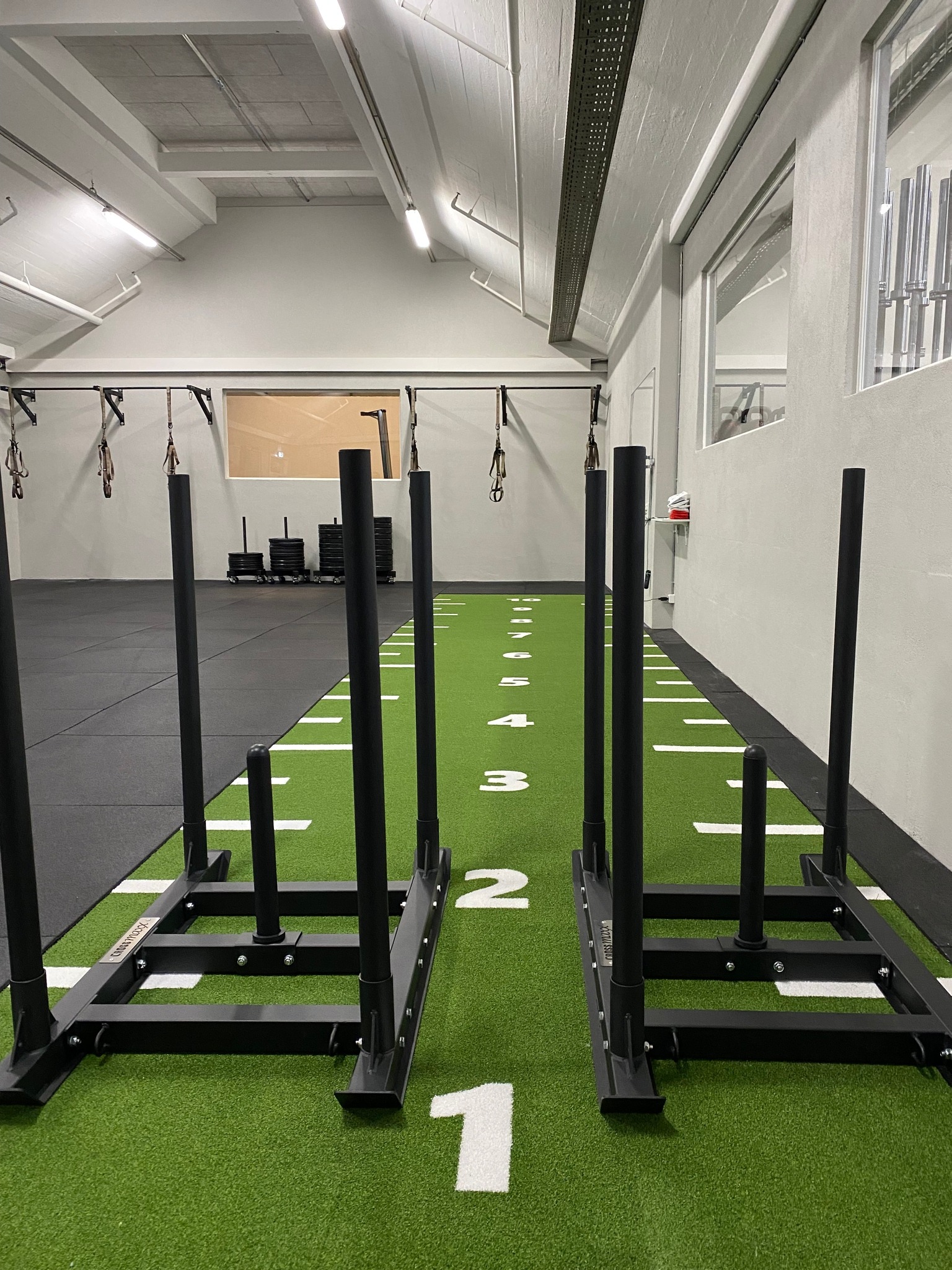De Sprinttrack met nummers en meter-aanduiding is ideaal voor gyms, CrossFit-locaties en Hyrox-trainingsruimtes. De matten zijn getuft en niet bedrukt, waardoor ze extra slijtvast zijn en intensief dagelijks gebruik goed aankunnen. Zo blijven kleuren en belijning langdurig zichtbaar, zelfs bij zware sled- en krachttrainingen.