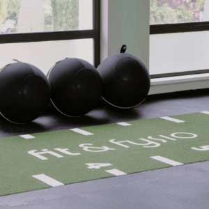 Bij Fit & Fysio in Linne waren ze op zoek naar een echte eyecatcher, de Sprinttrack met meteraanduiding en logo is dit dan ook echt!
