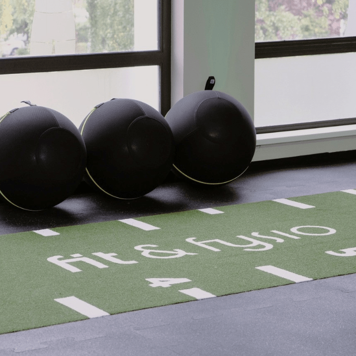 Referentieproject Sprinttrack kunstgrasmat fitnessvloer: Fit & Fysio Linne.