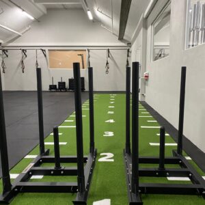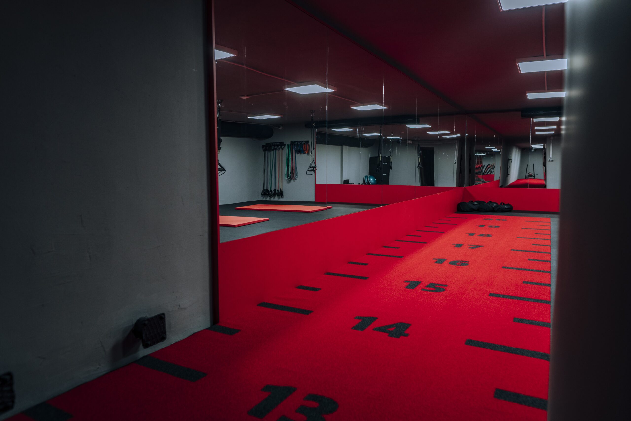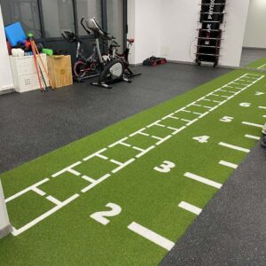 De Sprinttrack met nummers en meter-aanduiding is ideaal voor gyms, CrossFit-locaties en Hyrox-trainingsruimtes. De matten zijn getuft en niet bedrukt, waardoor ze extra slijtvast zijn en intensief dagelijks gebruik goed aankunnen. Zo blijven kleuren en belijning langdurig zichtbaar, zelfs bij zware sled- en krachttrainingen.