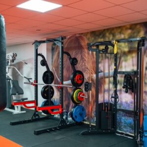 Een rubber fitnessvloer biedt uitstekende grip en is bestand tegen intensief gebruik. De vloer beschermt apparatuur en de ondervloer tegen vallende gewichten en vermindert geluid, wat prettig is voor zowel fysiotherapeuten als patiënten.
