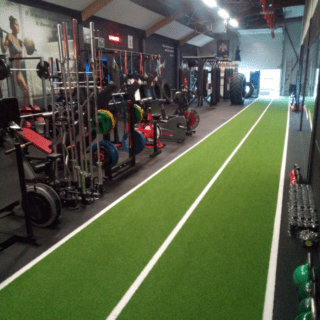 De tracks zijn ook een echte eyecatcher en geven de ruimte een professionele, moderne uitstraling. Dankzij het hoogwaardige rubber bieden ze goede grip en bescherming van de ondervloer. Bovendien is er veel flexibiliteit in belijning en kunnen wij een ontwerp op maat maken dat volledig aansluit bij jouw praktijk en trainingsdoelen.